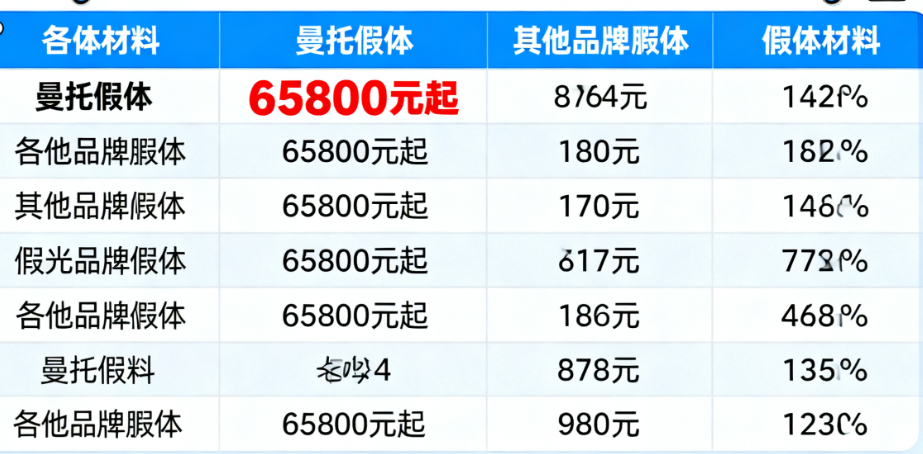 (1)曼托假体:15800 - 30000元(基础款)