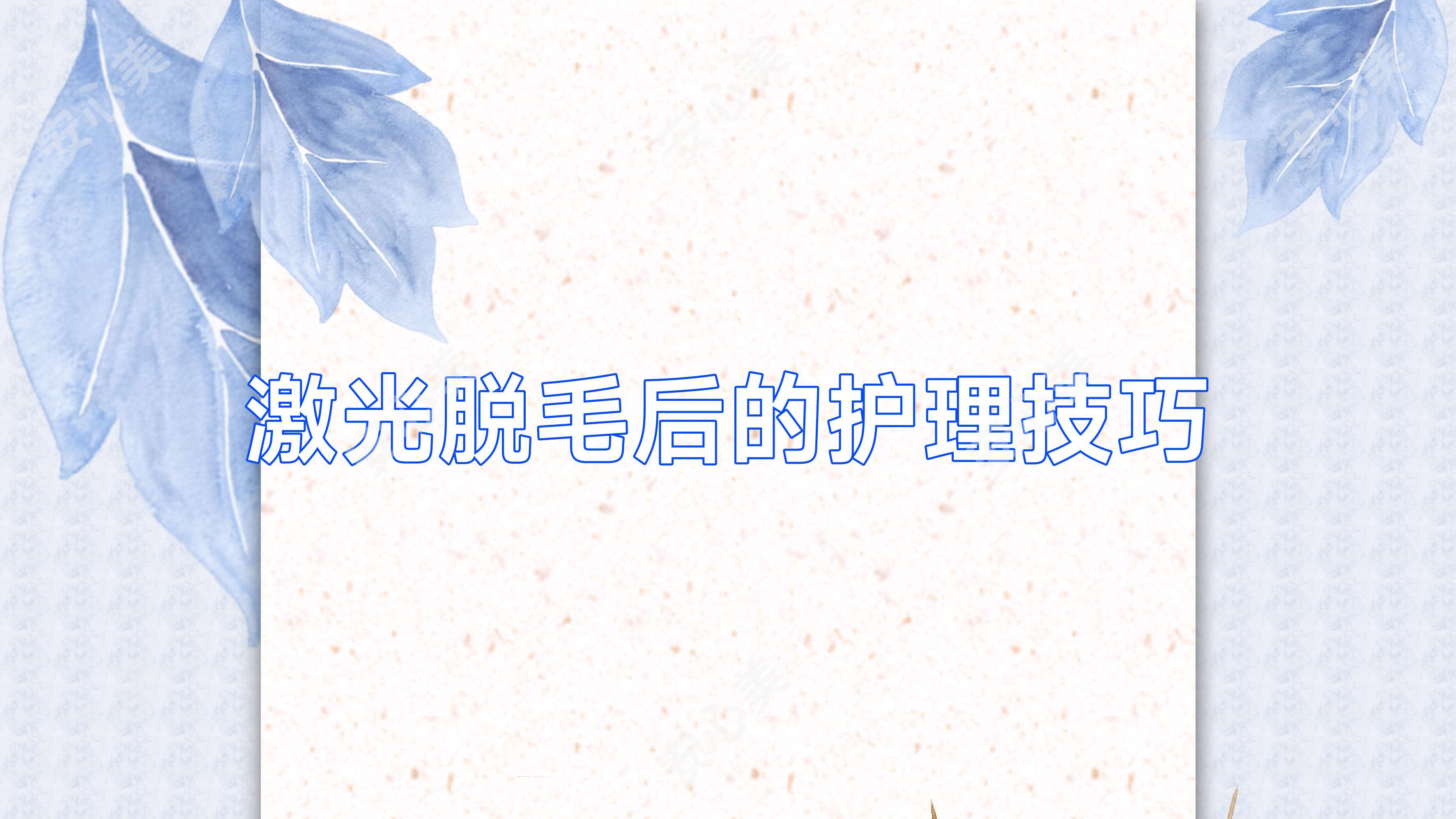 激光脱毛后的护理技巧: 激光脱毛后,肌肤可能会有些许红肿或灼感,这是正常现象,可以冰敷减轻不适。避免暴晒、热水浴和擦洗,以免刺激皮肤。使用温和的滋润霜或芦荟胶帮助舒缓,保持皮肤水分。避免接触刺激性化妆品或香水,让皮肤得到充分休息。注意防晒,避免色素沉着加重。如果出现异常情况,及时咨询医生。
