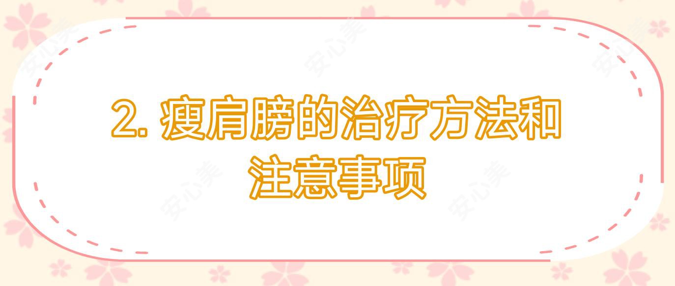 瘦肩膀是指肩部过度消瘦的情况,通常与肌肉量不足或运动不足有关。治疗瘦肩膀的方法包括进行有效运动锻炼,针对肩部肌肉进行力量训练,增加肌肉量。此外,还可以通过合理的饮食搭配增加营养摄入,促进肌肉生长。在进行运动训练时,要注意适量,避免过度运动造成肌肉疲劳或伤害。同时,保持良好的姿势和均衡的饮食习惯也是预防瘦肩膀的重要措施。