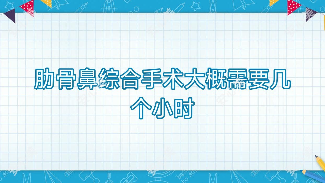 肋骨鼻综合手术是一种整形美容手术,用于改善鼻子形状和轮廓。手术通常需要几个小时的时间,具体时间取决于手术的复杂程度及医生的经验和技术。