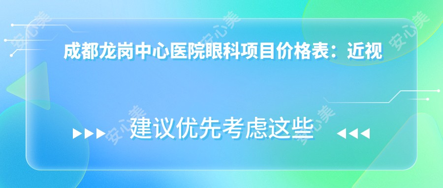 成都龙岗中心医院眼科项目价格表:近视手术3800元起,白内障等费用一览