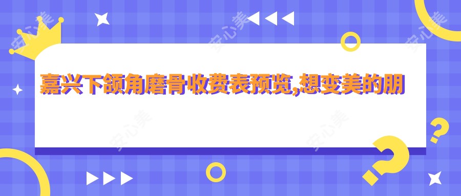 想变美的朋友们,对于下颌角磨骨手术可能有所了解,但具体的费用是否还存在疑惑呢?现在就来预览一下嘉兴地区关于下颌角磨骨手术的收费表吧!下颌角磨骨手术是一种通过手术来改变下颌