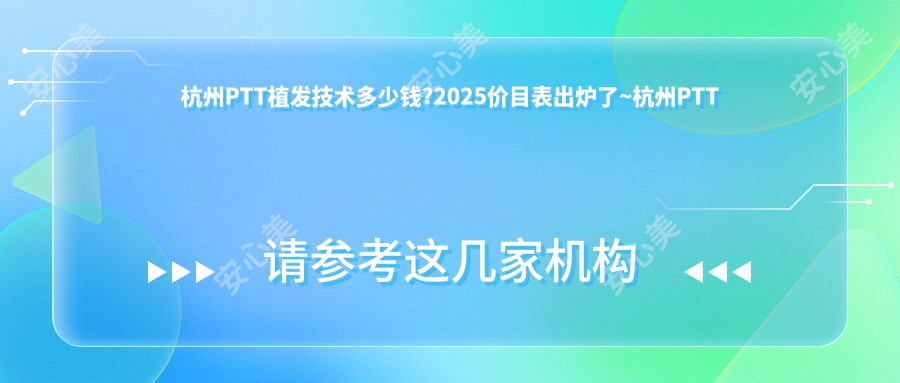 杭州侬晓得伐,PTT植发技术现在老热门咯!2025年价目表新鲜出炉啦!想晓得杭州PTT植发技术到底要几钿伐?快来瞅瞅杭州市第三人民医院的最新报价,真实可靠哦!该技术以其高效安全著称
