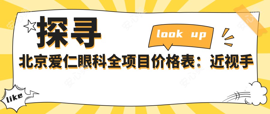 探寻北京爱仁眼科全项目价格表,让您对眼科治疗费用一目了然。近视手术价格亲民,8000元起,助您摆脱眼镜束缚。白内障治疗专业高效,仅需6000元,重拾清晰视界。更有检查费100元起,